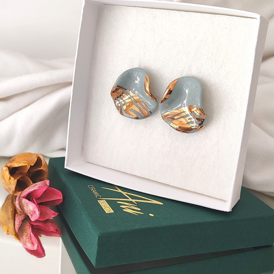 Ove lagane porcelanske minđuše u Mint boji, uokvirene 14k pozlatom, imaju oblik latice koji odiše elegancijom. Savršene su za svečane prilike, dodajući suptilan i sofisticiran detalj vašem izgledu bez opterećenja. Idealne su za one koji traže jedinstveni, ali diskretan nakit.