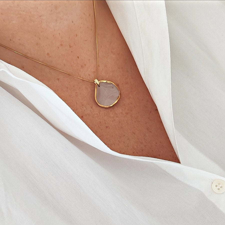 Ovaj porcelanski set minđuša i ogrlice u obliku latice u nežnoj puder boji oplemenjen je 14k pozlatom, pružajući sofisticiran i elegantan izgled. Sajla je izrađena od hirurškog čelika, što garantuje antialergijska svojstva, jednako kao i iglice na minđušama. Savršen za svakodnevnu upotrebu i posebne prilike.